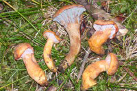 Hygrophorus olivaceoalbus, specie abbastanza rara, simbionte obbligato dell'abete rosso (Picea abies) |
